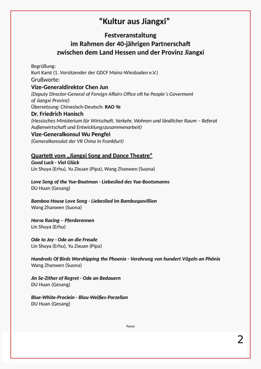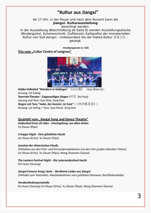 21. Wie jedes Programm mit traditioneller chinesischer Musik besteht auch das heutige aus Ensemblestücken und Soli, klassischer Musik und neukomponierten Werken.